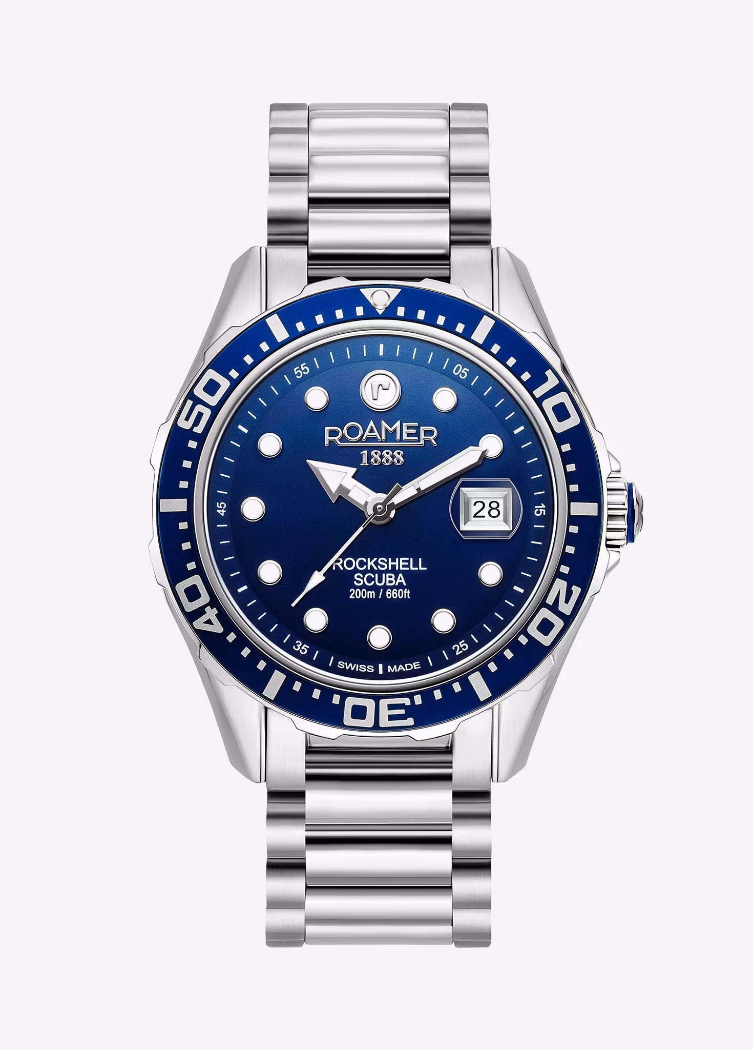 Roamer Rockshell Mark III Scuba 6 498 kr Vattentät 200m, safirglas, 44mm, Ronda Quartsverk Lägg i korgen Dela Artikelnummer: R220858414550 Information Vattentät 200m, safirglas, 44mm, Ronda Quartsverk