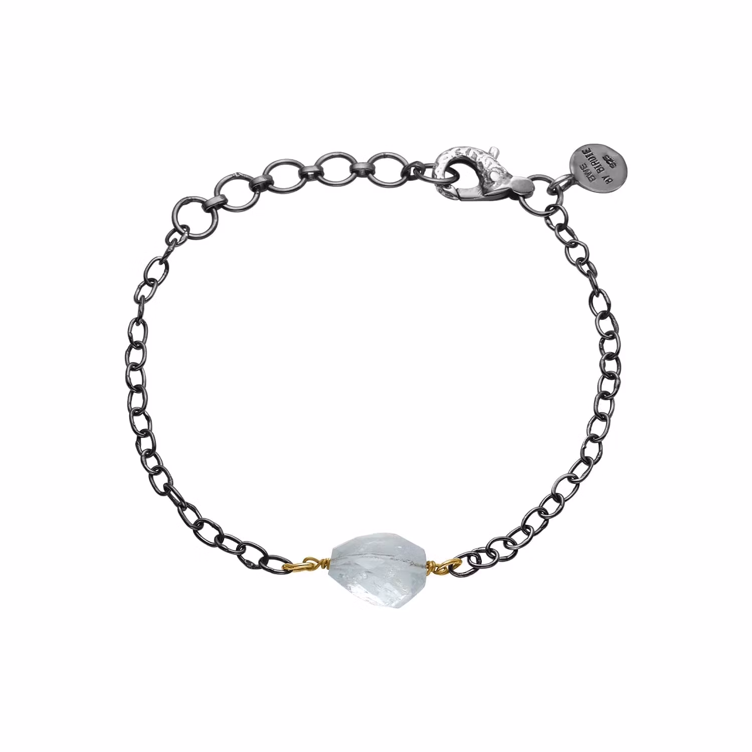 Sterling Silver och 14K Guld. Aquamarine. Längd 17-20,5cm.