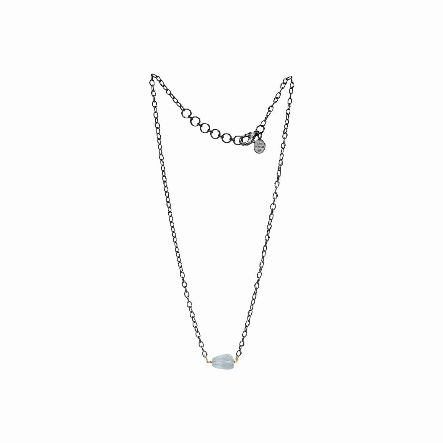 Sterling Silver och 14K Guld med Aquamarine. Längd 45-49cm