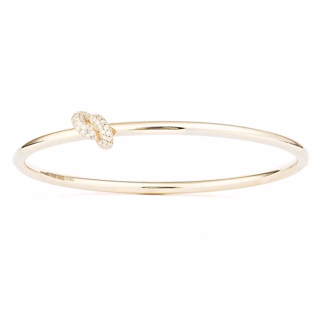 The Legacy Knot bangle is crafted in 18k gold and set with a total of 0.60 carats of rare white (G/VS) diamonds.