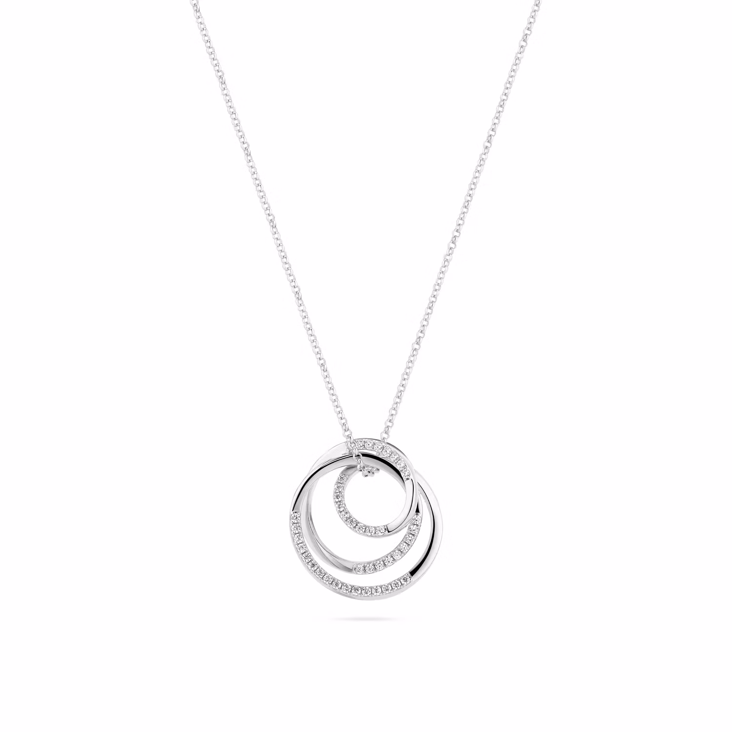 Halsband av rodinerat 925 sterling silver, en polerad yta och handmonterade med fasettslipade vita zirkonerHalsband Mått: Bredd 25 mm, Kedjelängd upp till 50 cm