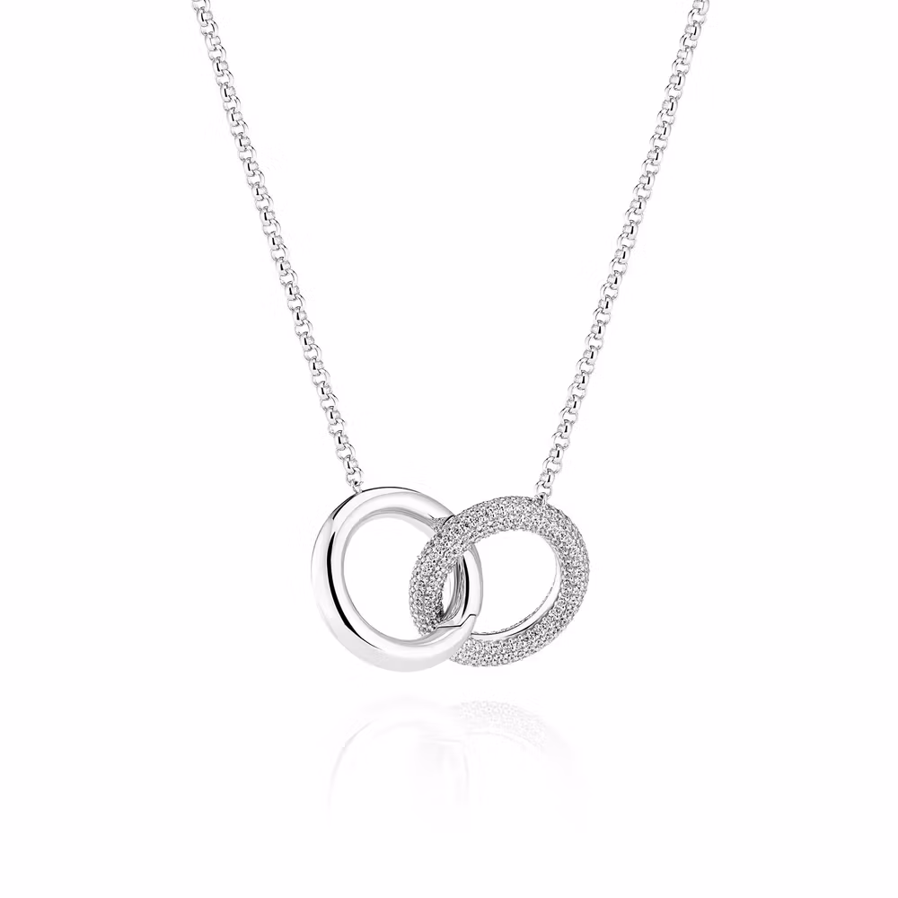 Halsband i rodiumpläterad 925 Sterling Silver med polerad yta och handplacerade fasetterad vita zirkoner