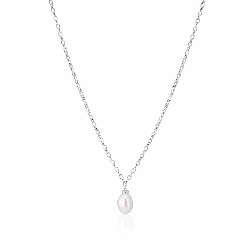 Halsband i rodiumpläterad 925 Sterling Silver med polerad yta och glänsande sötvattenspärlor. Alle Barock-Süßwasserperlen haben unregelmäßige Formen mit organischen Formationen; jede Perle ist einzigartig